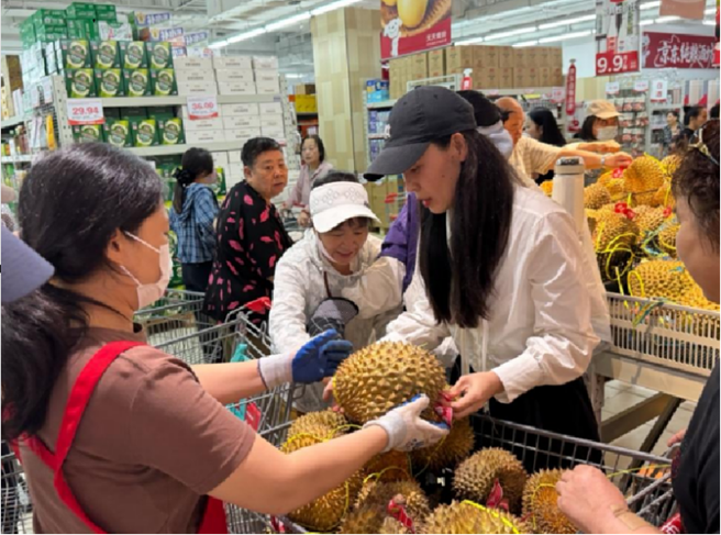 500)this.width=500 align=center hspace=10 vspace=10 alt=7天爆卖15万斤榴莲!超市多次告急补货。国庆中秋节前县域消吃力正在京东扣头超市迸发>